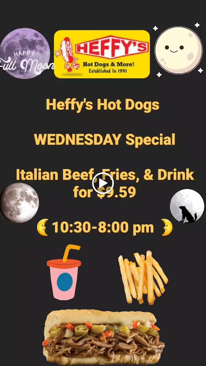 Welcome to Heffy's Hot Dogs, a delightful culinary destination nestled in Mt. Prospect, Illinois. Renowned for its mouthwatering hot dogs, this eatery offers an exciting menu that highlights a range of delectable dishes. From the classic Hot Dog at just $4.95 to the indulgent Chili Cheese Dog for $7.50, there's something for everyone. Beyond the dogs, their Gyro Wrap ($12.95) is a standout, featuring perfectly balanced flavors that many of our reviewers swear by.